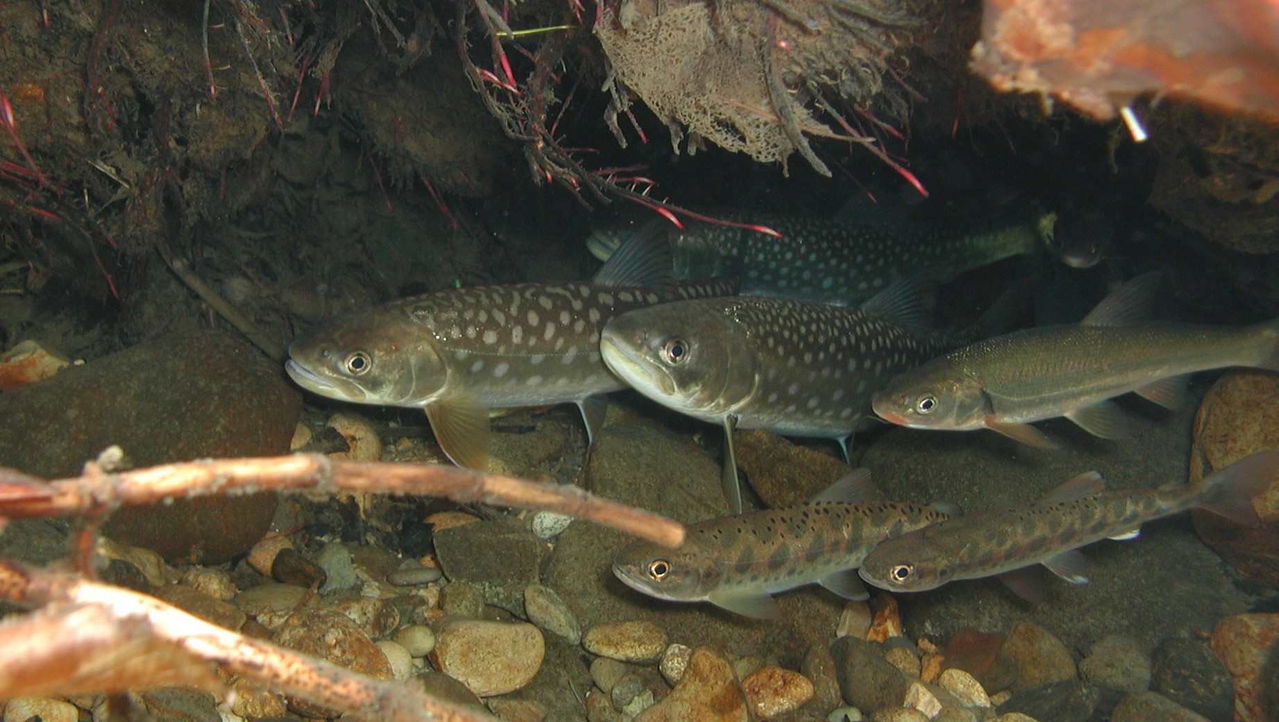 - 海へ下りるイワナ: 本州では一生を川で過ごす残留型(河川型、陸封型)が一般的だが、北海道や東北北部では海へ降りる回遊型がいる。しかし、砂防堰堤などのダムの影響によって回遊型のイワナはめずらしい存在になりつつある。なお、ゴギの分布域である島根県高津川においても、「カイオ」と呼ばれる大型魚の存在が知られ、その外見的特徴は回遊型にやや似ているものの、その生活史は謎のままである。